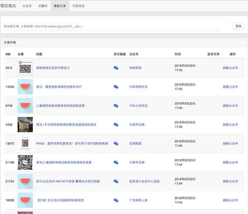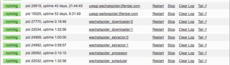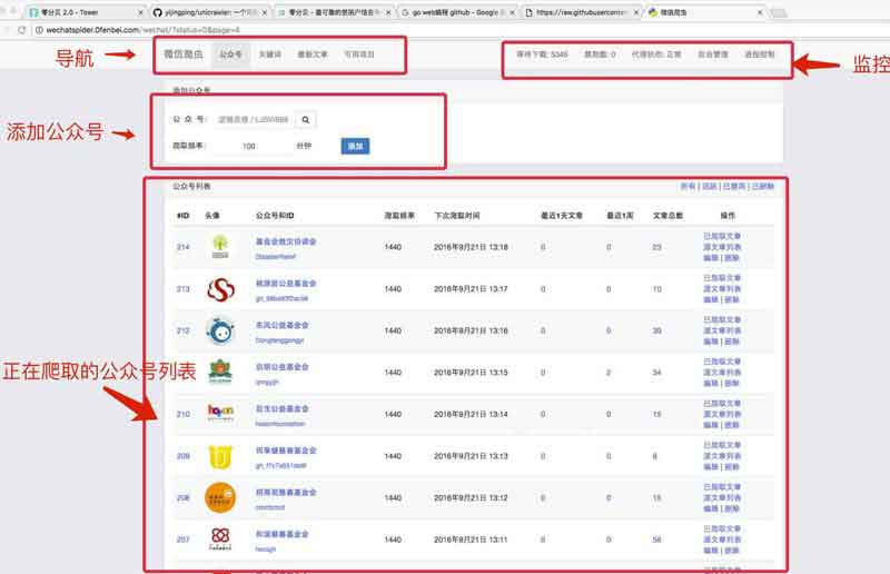 需要自己安装和使用supervisor,并且自己修改/wechatspider/templates/nav.html,修改相应的a标签。