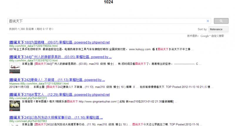 7、现在你可以在自定义搜索框(下面的搜索框),输入你想在草榴搜索的内容,并记得吧你创建的自定义搜索加入到收藏夹,方便下次打开。