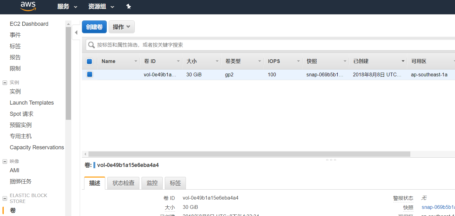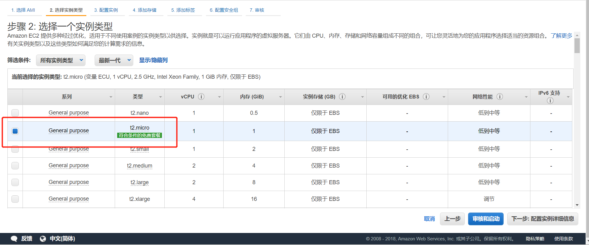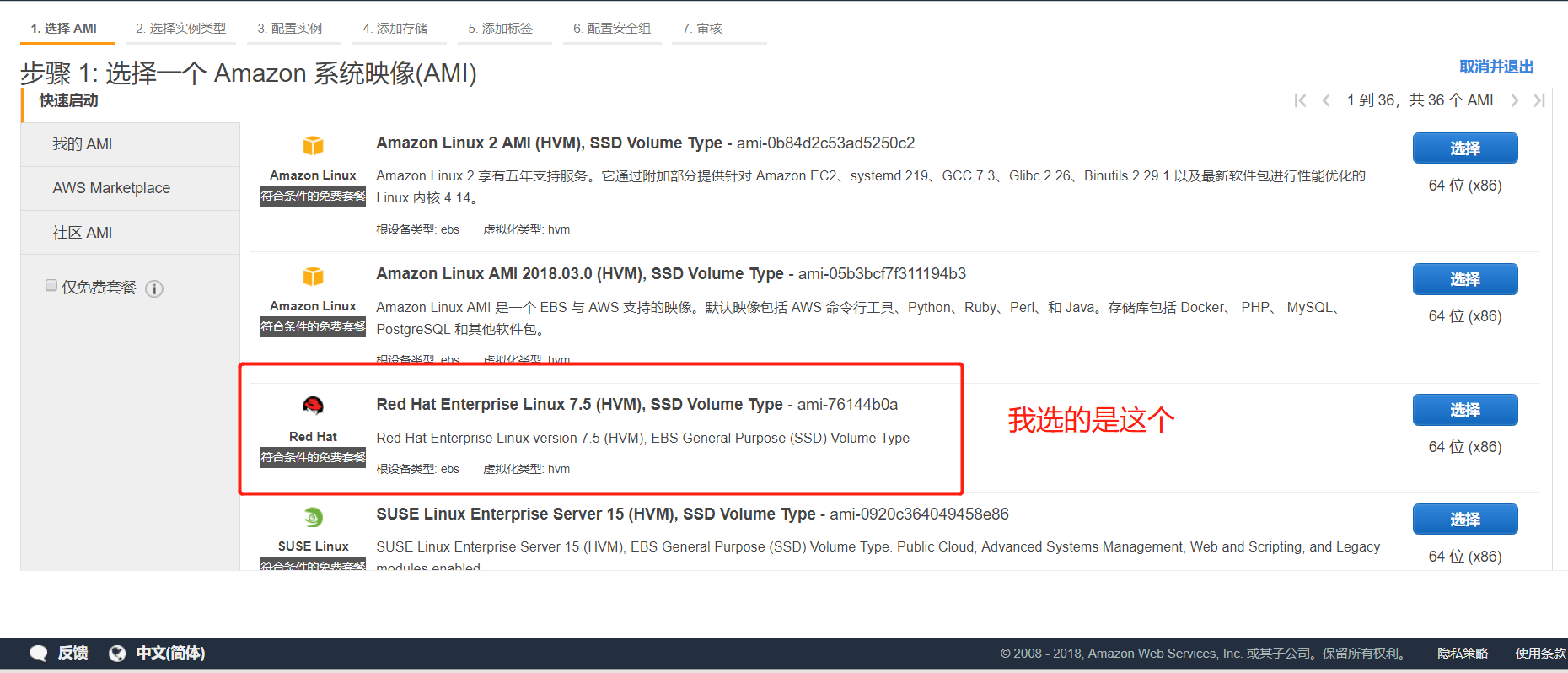 账户注册好后,接下来开始搭建服务器,在左侧导航栏中找到EC2,新建实例--选择AMI--选择实例类型--配置实例--添加存储--添加标签(可不做)--配置安全组--启东实例