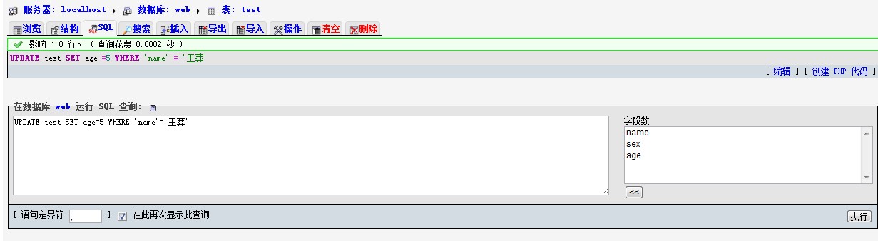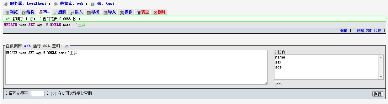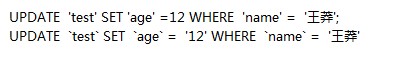 - PDATE test SET age=5 WHERE 'name‘='王莽'