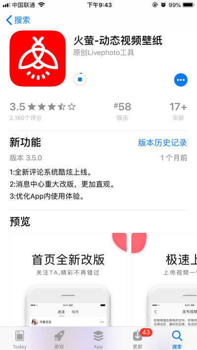 1.苹果商店搜索”火荧“动态壁纸应用,点击“获取”安装应用。很文博客-https://www.hinku.com/15165.html