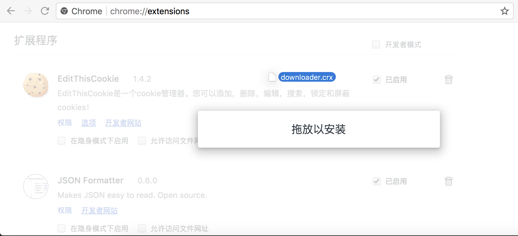 打开谷歌浏览器地址输入chrome://extensions/并打开,把下载好的“新版谷歌浏览器插件.crx”从文件夹里直接拖到“扩展程序”界面中。