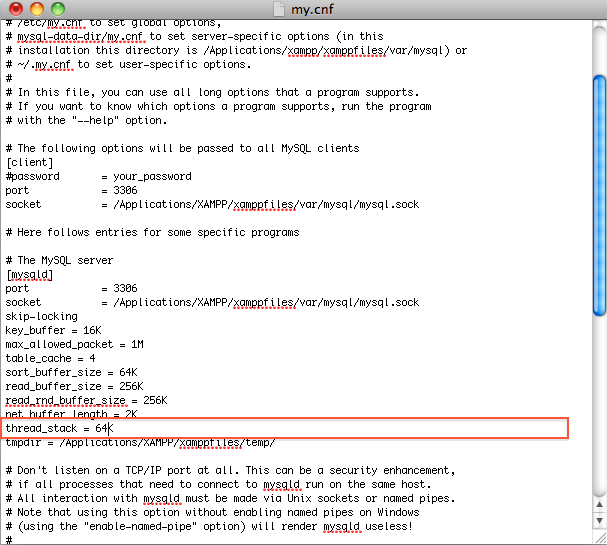 To resolve this issue you need to change the default value of parameter 'thread_stack' in /etc/my.cnf in your MySQL configuration file. I use the XAMPP for php/mysql development.很文博客-https://www.hinku.com/15357.html