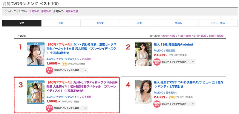 虽然是S1新人必经的第三片,但因为女优是“山手梨爱”而有所不同:因为她不是一般的新人,虽然因为接种疫苗发烧导致第2支作品迟到,但她的作品“九州No.1ボディ新人グラドル山手梨爱 人生初イキ!初体験3本番スペシャル ”拿下了FANZA销售排行榜的第3名,只输给了河北彩花和时田亜美;另外,10月才启动twitter的她人气强强滚,不只出道作在FANZA的按赞数破五万,twitter追踪更是直逼七万大关,简单说,就是四个字,超・级・新・人!很文博客-https://www.hinku.com/17561.html
