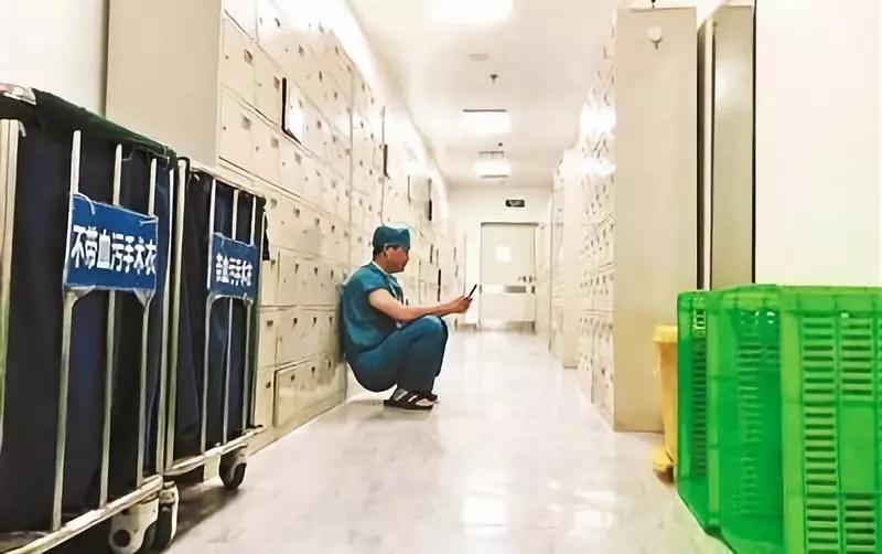 红会医院小儿骨科诊疗中心医生马益善,蹲在手术室外与女儿视频连线。被拍到的时候,他其实已经连续值班了36个小时,做了10台手术,可很累的时候,跟孩子聊聊天,就好像,疲惫都会消失不见。