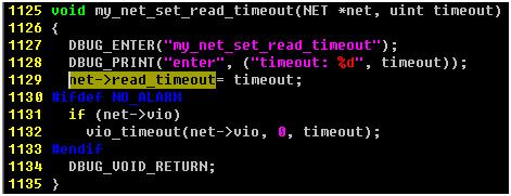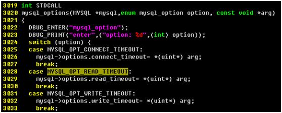 现在我们来看看如果我们自己要设置超时,我们自己压入 MYSQL_OPT_READ_TIMEOUT 也是可以达到读写超时效果的,写一段代码来测试一下: