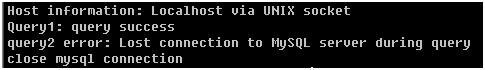 查看上面代码的执行结果,验证了上面的观点,第一个查询成功了,第二个查询连接被断开了: