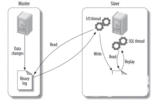 首先主服务器把数据变化记录到主日志,然后从服务器通过I/O线程读取主服务器上的主日志,并且把它写入到从服务器的中继日志中,接着SQL线程读取中继日志,并且在从服务器上重放,从而实现MySQL复制。