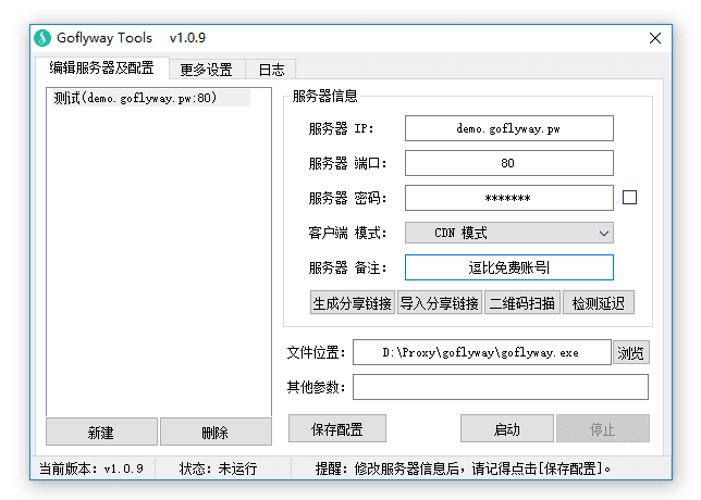 - 下载 Goflyway Tools 客户端文件,解压后放置到任何位置,并运行软件。