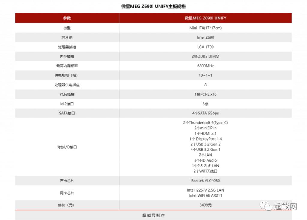 微星 MEG Z690I UNIFY 主板规格:很文博客-https://www.hinku.com/18527.html