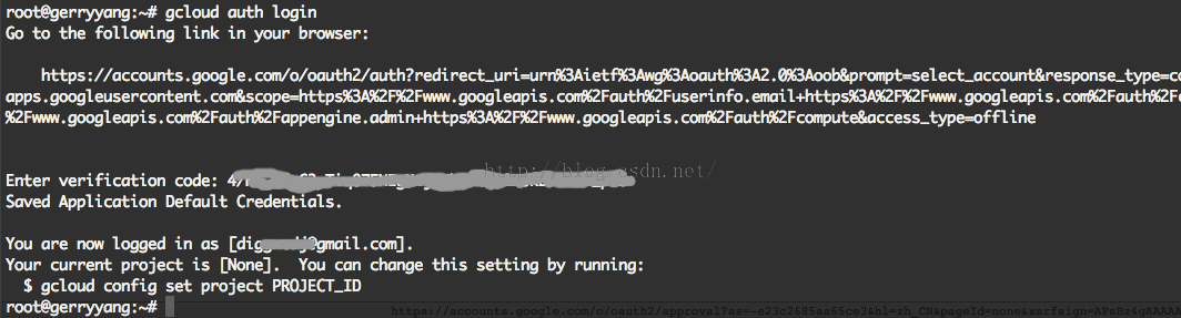 然后使用gcloud登陆GCP账户(即,完成认证):