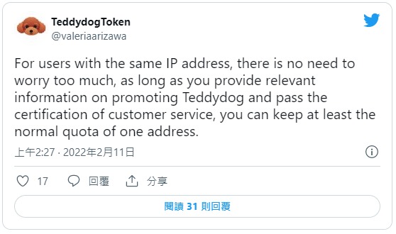 看了留言大家应该知道是怎么回事了,在AV界一片NFT的热潮中,苍井そら(苍井空)自然没有置身事外,打算发行自己的NFT,所以她与这个泰迪狗币(TeddydogToken)的业者之前有非常多的互动、还帮忙公募:很文博客-https://www.hinku.com/21019.html