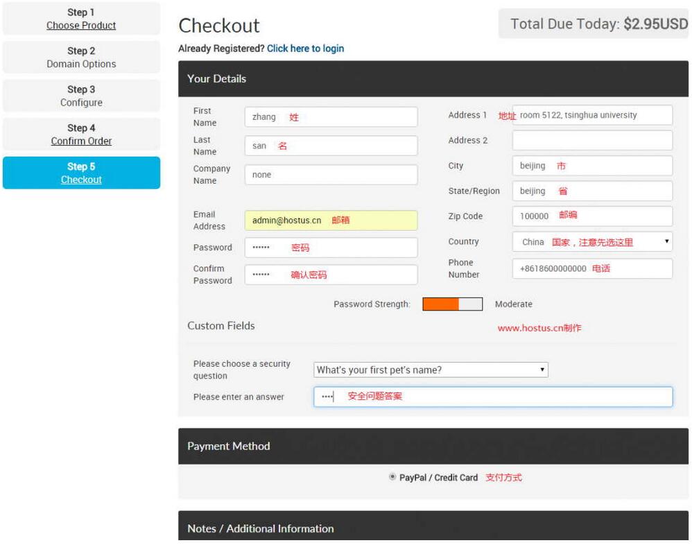 到步骤5后,会自动跳转的付款页面,如Paypal付款页面,因PP是中文,这里Hostus就不多解释了,付款即可完成Hostus特价VPS购买。