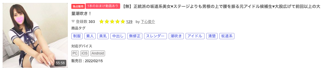 当然有的,真的要写的话一天一篇,要我写一个礼拜都没问题,首先就来看演出「【無】正統派の坂道系美女♥ステージよりも男根の上で腰を振る元アイドル候補生♥大股広げて前回以上の大量潮吹き!」这支作品的学生妹吧: