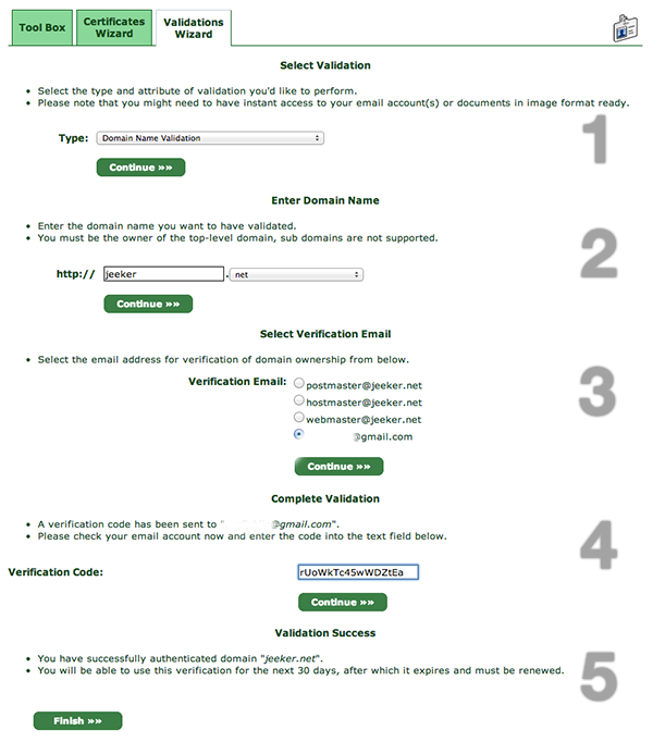 3.输入邮件内的验证码后就可以开始生成你的私人证书了,选项默认即可。