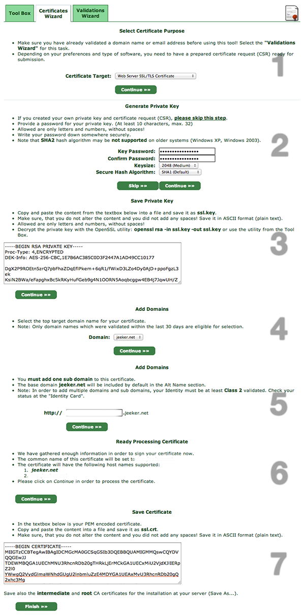 在使用证书证书之前还需要对生成的秘钥解密,可使用命令openssl rsa -in ssl.key -out ssl_decrypted.key,或者是StartSSL提供的工具: Tool Box - Decrypt Private Key,生成的内容另存为文件,如ssl_decrypted.key。