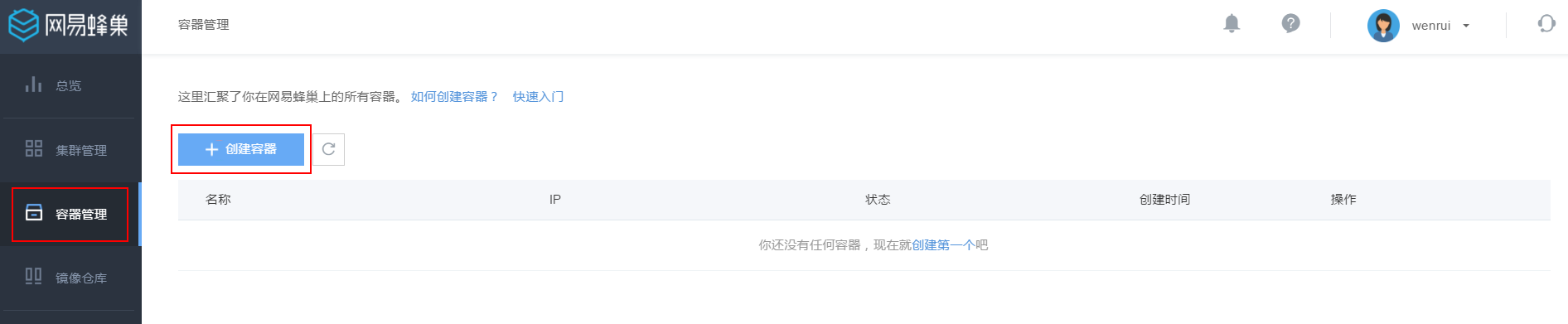 登录蜂巢控制台,选择「容器管理」,点击「创建容器」按钮:
