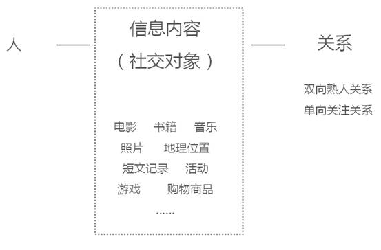 不同的社交信息内容,也是这些社交网站的各自特色所在,综合信息平台类、照片分享类、地理位置签到类、美食点评类、购物分享类、电影书籍音乐分享类等。曾经有把社交网站概括为 人——信息内容(社交对象)——关系 三个要素,那么其中信息内容便是社交网站差异化的核心