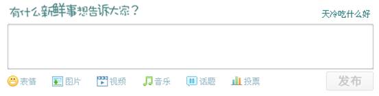 可以说信息的产生是一个社交网站的一个输入端,用户的活跃度很大因素依赖于内容的丰富程度,因此作为一个社交网站的信息产生输入端就似一个源头,只有设计好这个源头,才有源源不断的活水。