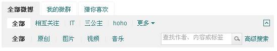 同样在我们设计中,当信息的丰富量达到一定程度时,需要把信息分组,并且提供信息的筛选,有对信息来源的分组,对内容的分组,对内容类型的分类等等。