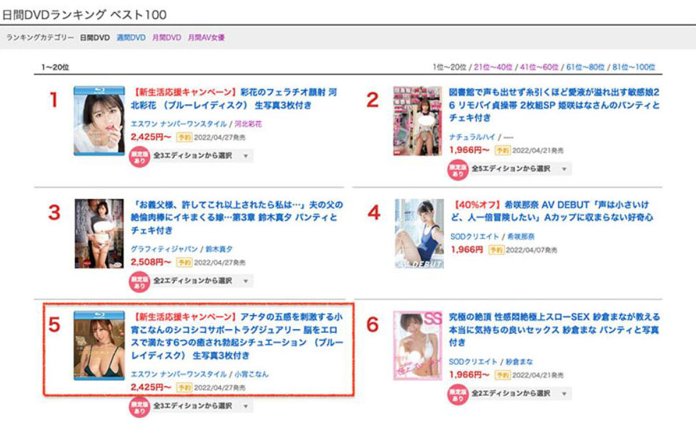 之前都是有“恋乳”之称的鹫尾めい(鹫尾芽衣),但这一次状况有点改变,从作品上架接受预约到现在,河北彩花仍然是不动的王者,但S1在她之后的人有变,都是由小宵こなん(小宵虎南)稳坐第二名的位置:很文博客-https://www.hinku.com/23984.html