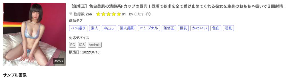 然后她就在片商「本中」被中出了ー虽然人设是因为失恋而下海,但天羽のい(天羽乃衣)在片中并不消沉,相反地,两支作品中她的表现都蛮积极的,照理来说应该会有些片商对她有性趣⋯