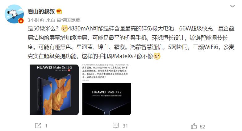 此外,据爆料,该机拥有 4880mAh 电池,66W 快充,采用复合叠层结构给屏幕增加缓冲层,可能是最平的折叠手机。