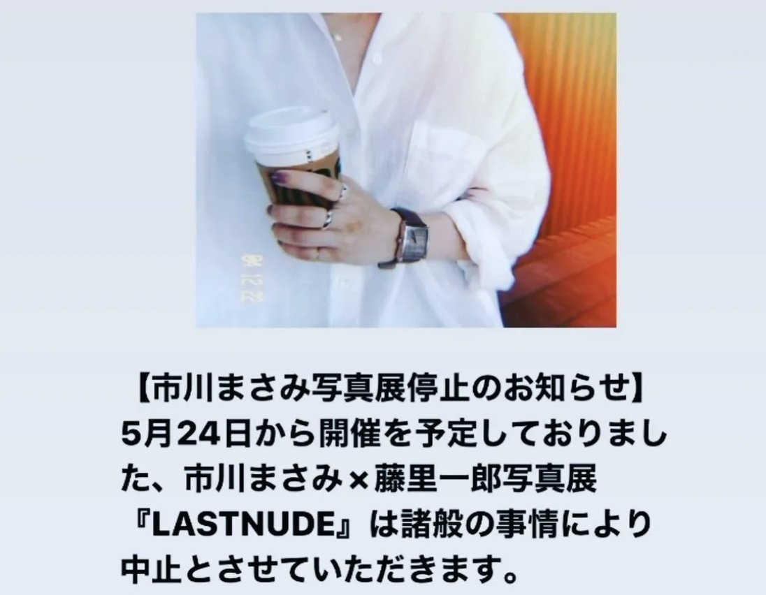 所以写真展只能喊停了。SOD应该也蛮错愕的,因为藤里一郎并非默默无闻的摄影师,他曾经和有村架纯合作,之前也一起合作过“夏目响”的写真展,看来只要是有人陪同的工作他就不敢轻举妄动。只是闹出这么这么大的事,市川まさみ(市川雅美)如果还要坚持举办摄影展那就太不识相了,所以原本预好的活动、说好的要和影迷见面只好通通喊停⋯