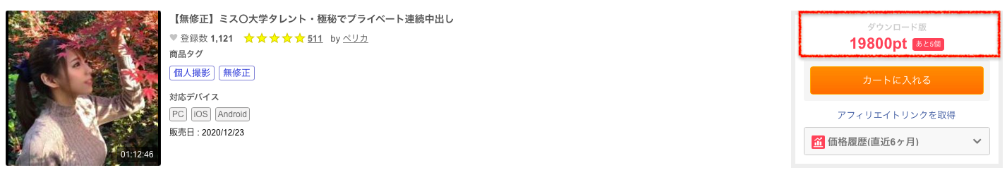 有的,像这支「【無修正】ミス〇大学タレント・極秘でプライベート連続中出し」(FC2-PPV-1617059)也不便宜,要价19800日币(4550元台币左右),一般来说这价格已经超过大家购买A片的预算了,之所以卖家敢定价这么高应该是因为标题说她是大学小姐吧?