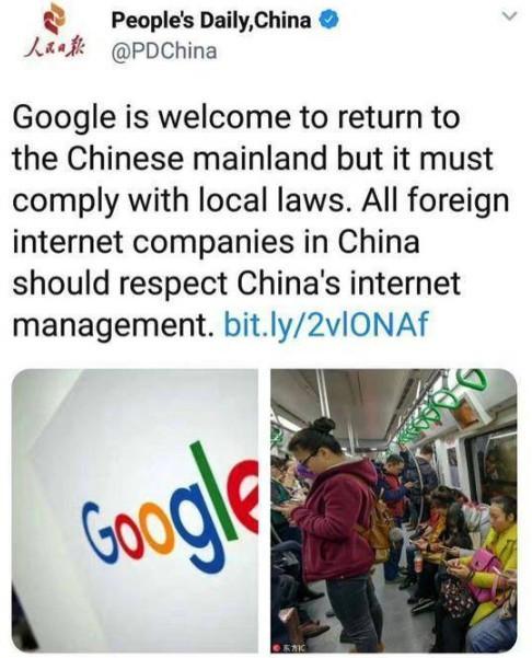 早前,人民日报发文欢迎谷歌回归,但前提是“遵守中国法律”。很文博客-https://www.hinku.com/29776.html