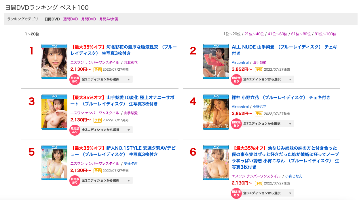 这是昨天FANZA的销售排行榜。很文博客-https://www.hinku.com/30674.html