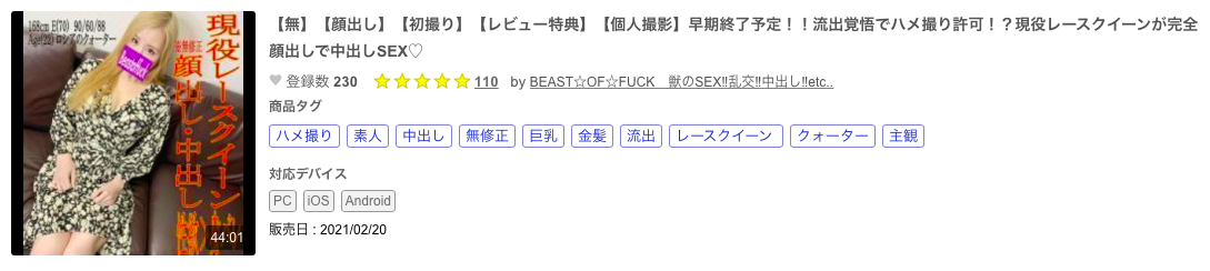 当然,FC2她也去过,「【無】【顔出し】【初撮り】【レビュー特典】【個人撮影】早期終了予定!!流出覚悟でハメ撮り許可!?現役レースクイーンが完全顔出しで中出しSEX♡」那位号称当过赛车女郎的女主角就是她(FC2-PPV-1694980),总之,这是一个出道有段时间然后之前大量下马的女优,有码界她是回不去了也没必要,大家就记住她屁股上的胎记,未来认人方便~