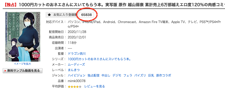 可能有些朋友觉得这样的作品是搞笑,但容我提醒你,不管是搞笑还是要你看得很硬、又或者只是在蹭原作热度,Moodyz可是很看重这支作品的:一来MIMK的A漫实体化系列向来Moodyz的招牌和销售利器,二来吉根ゆりあ(吉根柚莉爱)与Moodyz合作的漫改作品是有口皆碑,上一支「1000円カットのおネエさんにスいてもらう本。実写版 原作 越山弱衰 累计売上6万部越えエロ度120%の肉感コミックを実写化!」一样是漫改一样叫吉根ゆりあ(吉根柚爱)戴上口罩没事别露脸然后还强调她和漫画女主角一样奶子大的吓死你,结果呢?那支作品在FANZA上拿到了超过6万个赞,是吉根生涯之最!