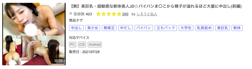 不过这支有码界之前可精彩了,因为她就是个无码人:2020年的时候她就与FC2的卖家「ヒメドウガ」合作拍摄无码片,自此展开在步兵界的奇幻之旅:与BagBang合作演出「【個人撮影】顔出し あみ21歳 Gカップ巨乳の黒髪ロングJDに全身舐めさせ超デカチンを生ハメ大量中出し!!」演出的她是爱吃大阳玩具的G奶长发大学生(FC2-PPV-1642927),与另一位卖家しろうと仙人则是又添加了超软体的演出特色(FC2-PPV-1945341,FC2-PPV-1945346),与下心俊介、ネオペイ也分别在去年下半年拍了三支作品⋯看到这儿我都好奇她干嘛多此一举去有码界发一支名不见经传的作品,没有艺名露出在各大卖片网站根本检索不到她的名字,薪水当然也不是很多(宝生リリー说她拍那种作品只能拿到8000日币),真的就拍心酸的: