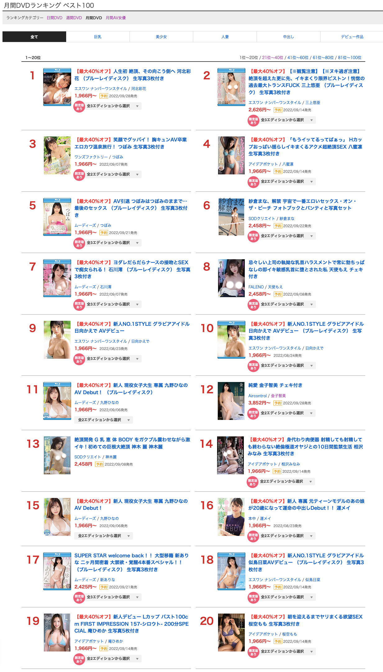 第二名则是三上悠亚的作品「【※観覧注意】【※ヌキ過ぎ注意】絶頂を超えた更に先、イキまくり限界ピストン!恍惚の過去最大トランスFUCK」,虽然这支系列片「【※異常なる大絶頂】エロス最大覚醒!性欲が尽き果てるまで怒涛のノンストップ本気性交」她之前就演过了,不过因为标题说这是要欣赏前要做好心理准备的作品,剧照和试看视频看起来也超激烈的,所以打从情报解禁以来就一直很卖很卖,不只DVD销售排行第二,累积销售的月间AV女优排行榜她也是第二⋯很文博客-https://www.hinku.com/34854.html