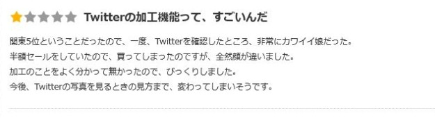 因为说是关东第5名,所以就去twitter确认了一下,是很可爱的女孩子,因为半价特卖所以买了,但是脸长得完全不一样。因为实在修得太离谱害我吓了一咷,之后可能连看twitter照片都会有所保留了⋯