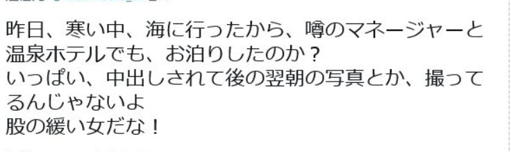 昨天那么冷的天气里还去了海边,是跟传说中的经纪人去温泉旅馆睡了吗?不要拍那种中出完后隔天早上起床的照片啦,真是个很「松」的女人呢!