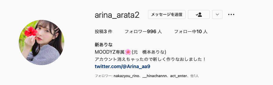 没错,她昨天在twitter上请大家去追踪新的IG(https://www.instagram.com/arina_arata2/)ー和其他喜欢搞社群的女优不同,新ありな(新有菜)才不搞小号,会注册新帐号只有一个原因,就是原先的帐号没了⋯很文博客-https://www.hinku.com/37018.html