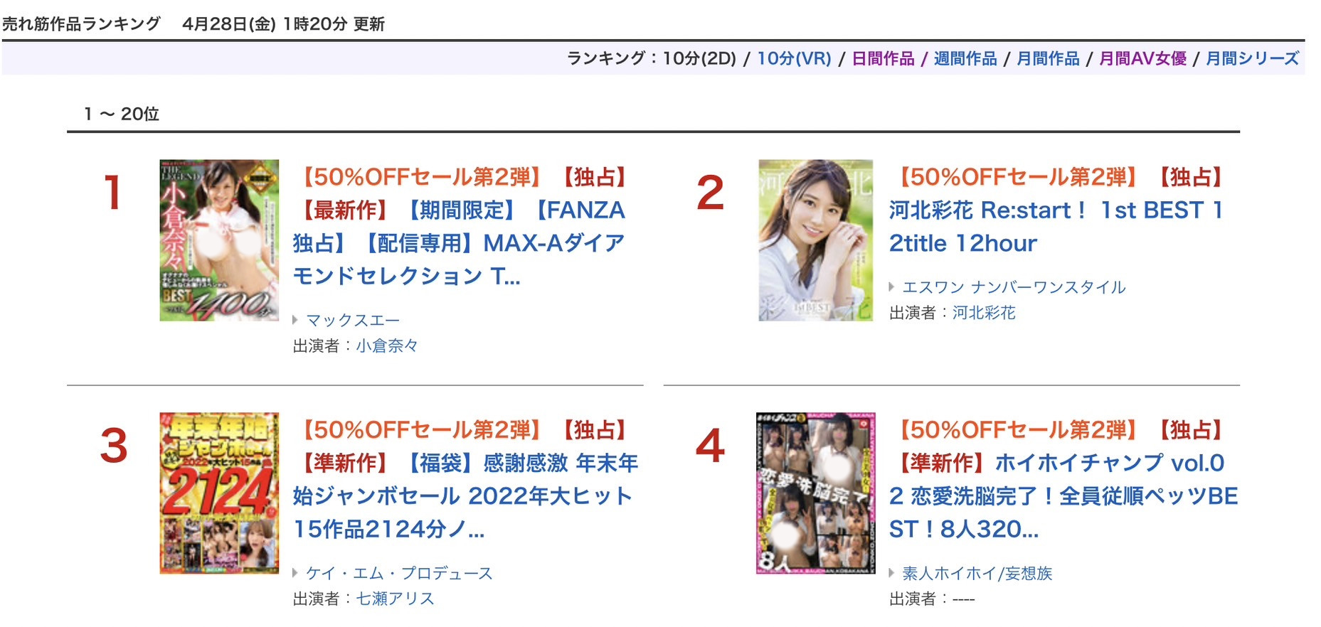 那就是对折促销第二弹(50%OFFセール第2弾)的超豪华精选辑「MAX-Aダイアモンドセレクション THE LEGEND 小倉奈々 オグナナのデビューからの軌跡を惜しみなくお屆けスペシャルBEST ~フル尺1400分~」,这支作品已经连续好几天在FANZA的串流排行榜称王,什么河北彩花三上悠亜的通通被辗压⋯很文博客-https://www.hinku.com/39332.html