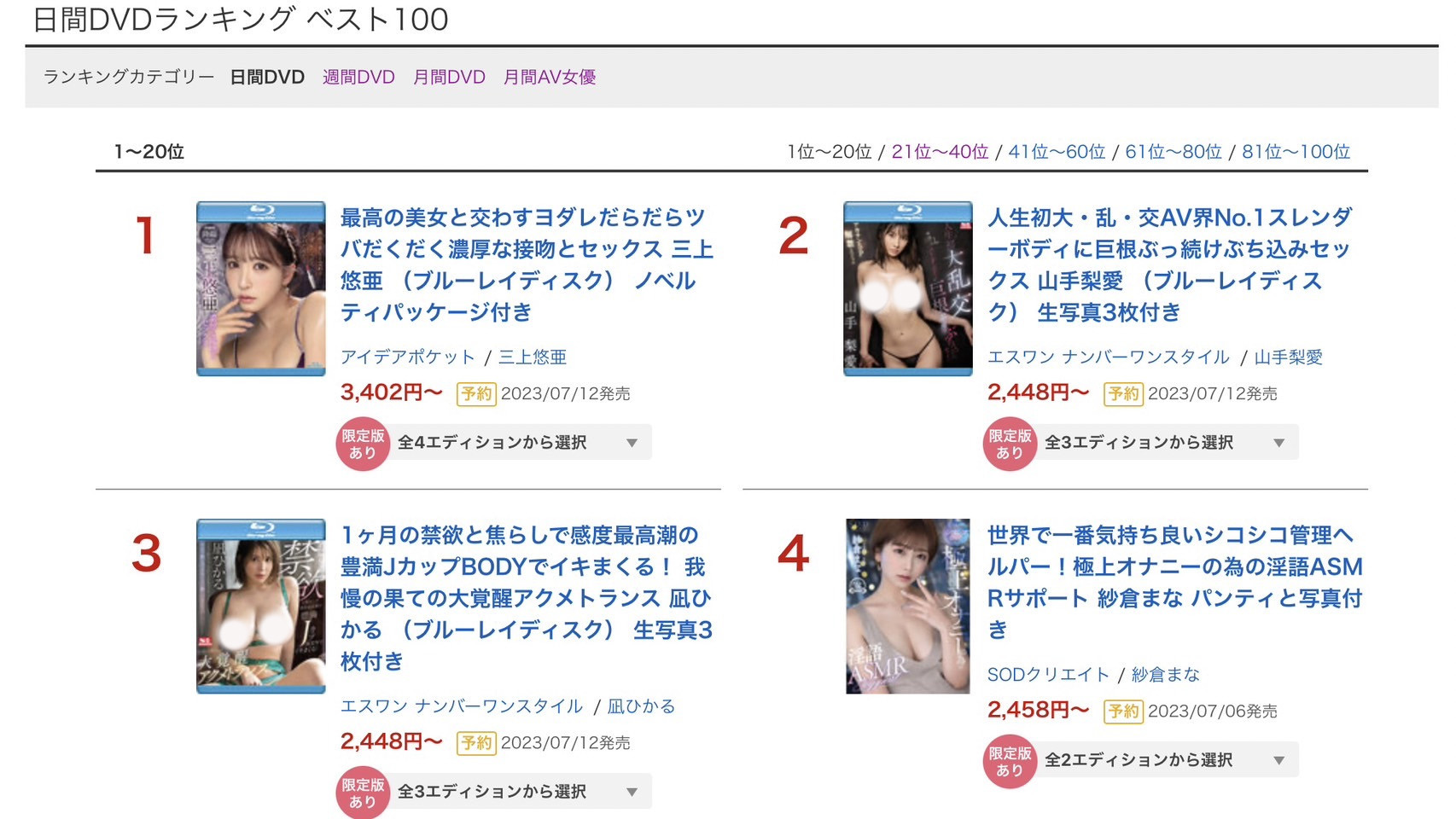 虽然人们常说新人无敌,不过三上引退实在是业界大事,再加上与IP社首次联手意义非凡,所以继续霸占冠军宝座;但有趣的来了,尽管三位新人来势汹汹,但第一天的销售排行榜揭晓,那三位新人的名次并没有想像中厉害⋯很文博客-https://www.hinku.com/42276.html
