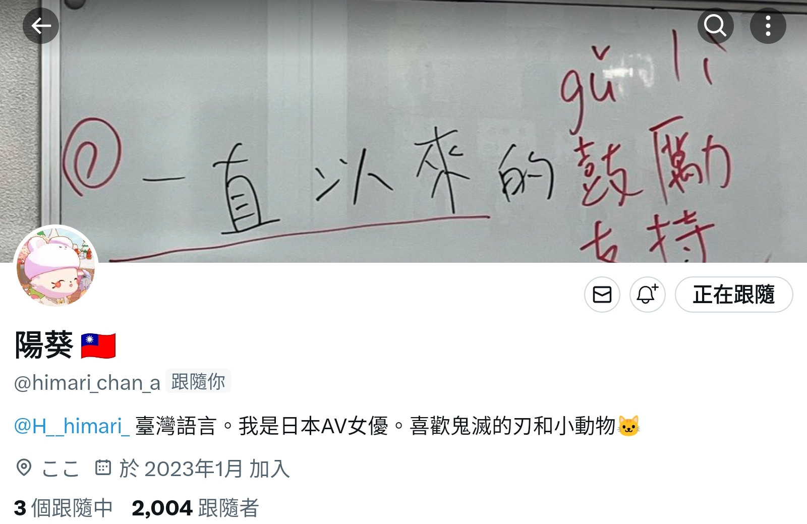 正确来说是日文的那个twitter不见了,她用「阳葵」之名注册、用来学习中文的帐号还在,这实在有点奇怪啊,以她之前热爱经营社群简直就像纠察队的行径来看肯定出了什么事,但如果不玩了又为什么留下中文帐号?她是在盘算什么?很文博客-https://www.hinku.com/42356.html