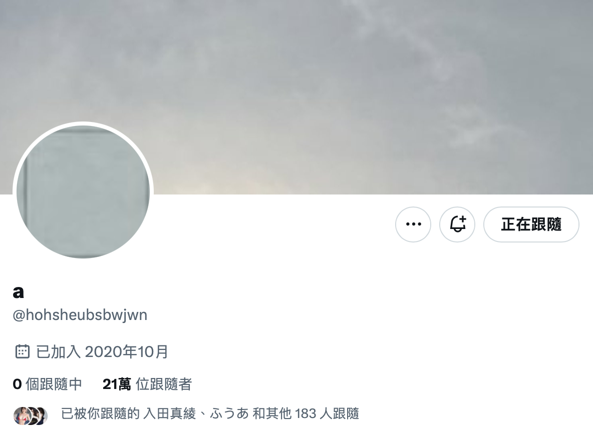 她把名字改成了「a」,帐号的ID也做了修改(https://twitter.com/hohsheubsbwjwn),然后把之前追踪的人都退了,发文也删光光,摆明了是要把帐号归零了⋯很文博客-https://www.hinku.com/42485.html