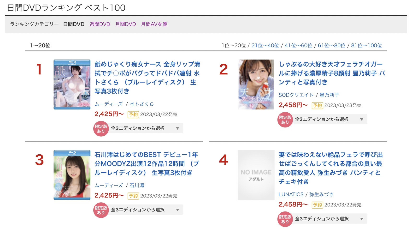 这是昨天FANZA的通贩日间排行榜。很文博客-https://www.hinku.com/43725.html