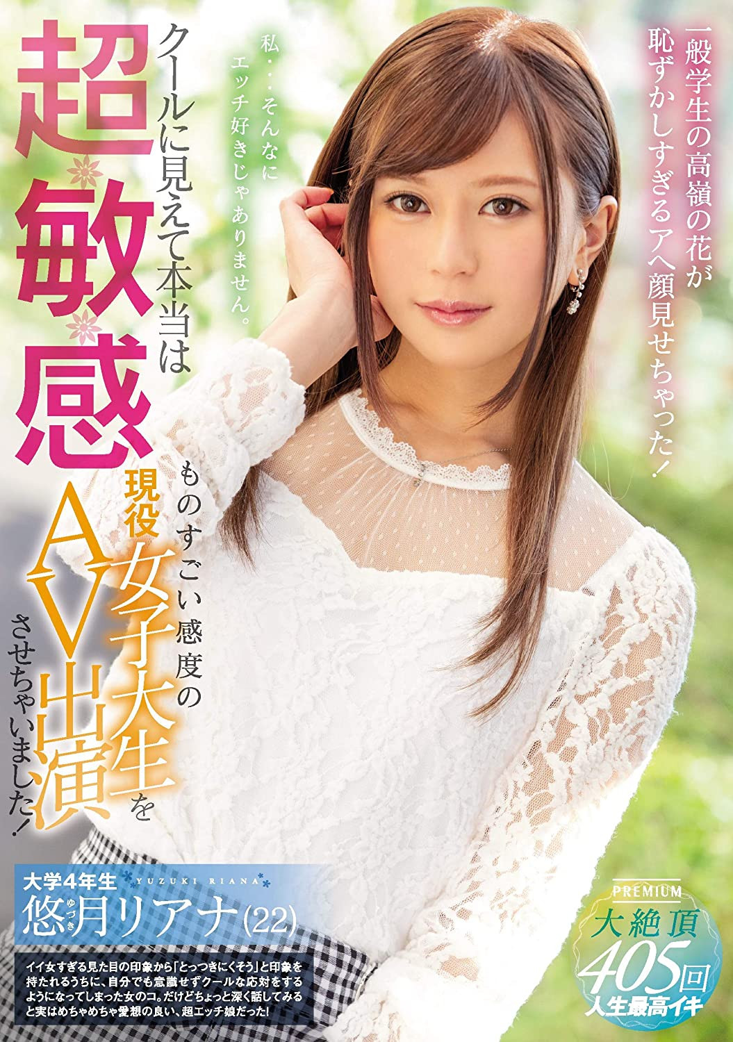 她的第一支作品是在片商Premium发行的「クールに見えて本當は超敏感 ものすごい感度の現役女子大生をAV出演させちゃいました!」,当时的设定是看起来像个酷酷的女大学生其实超敏感,有多敏感呢?就是ー很文博客-https://www.hinku.com/43853.html