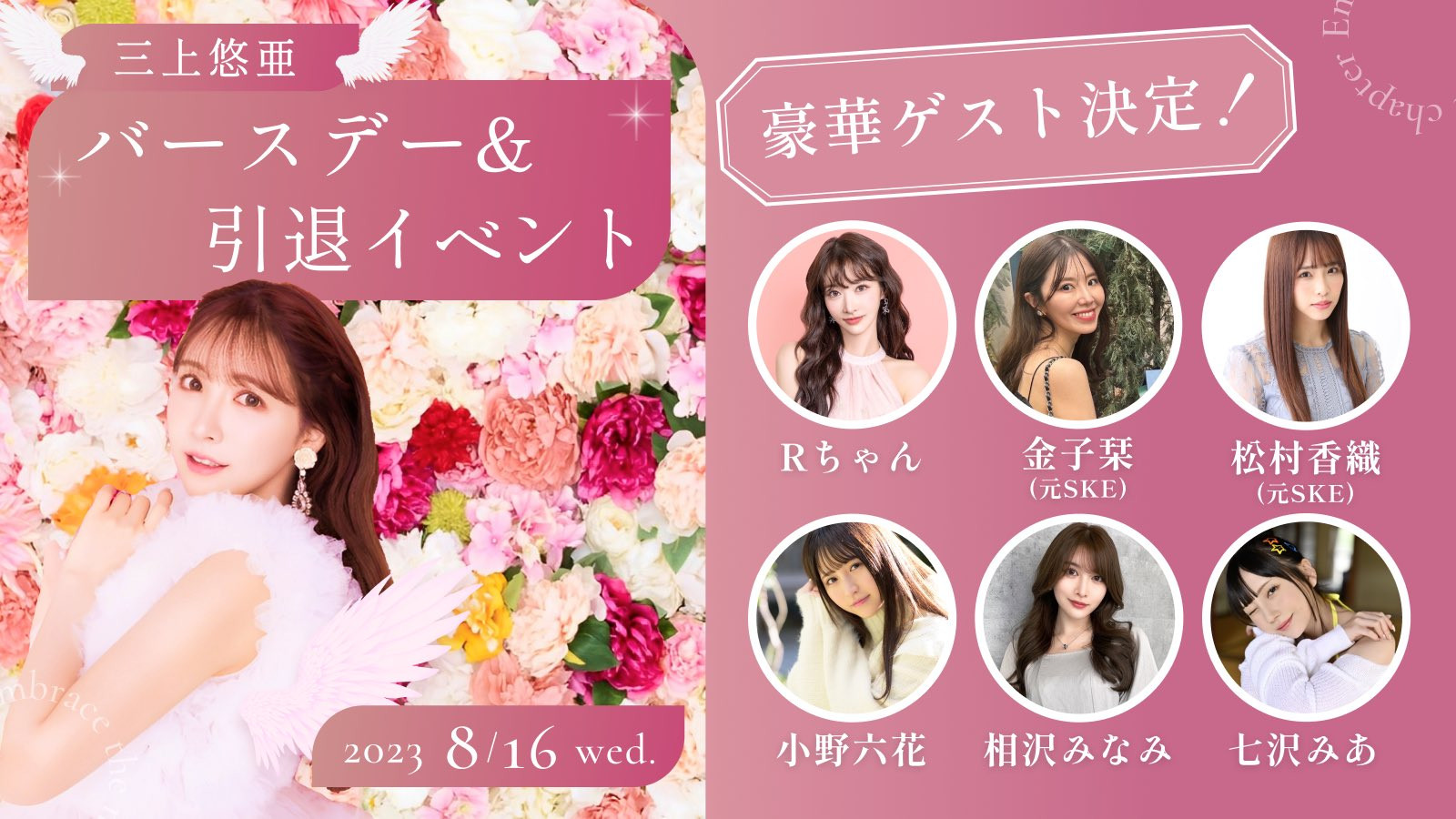 虽然还不知道她之前说要在8月时来台湾参加的活动是什么,但能成为三上悠亜引退加生日趴踢的一员肯定对日前也宣布引退的她是个好消息,很多人常问说她倒底什么时候要来台湾,但我觉得参加三上悠亜这个引退加生日趴的活动更有助于事业发展,不只厂商会再一次想起她也可以一解日本影迷的相思之苦: