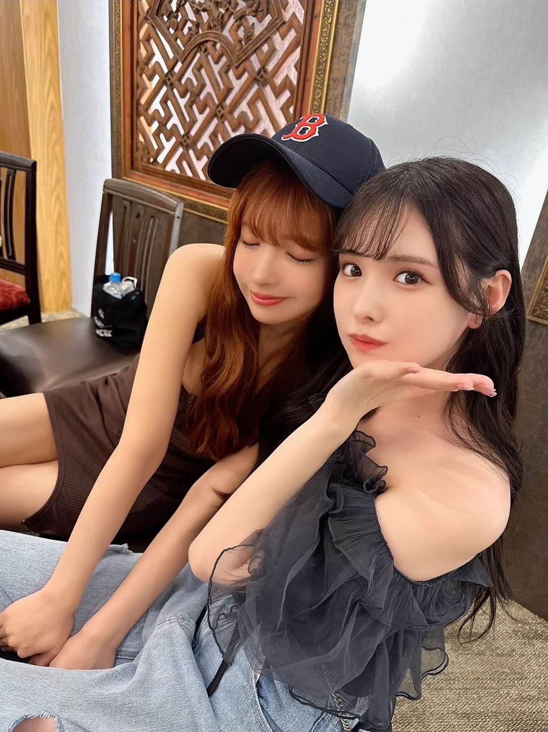 结果这时候新ありな(新有菜)走来:「唉唷悠亚酱辛苦了,终于又见到你了,天啊你怎么变这么瘦?真的是太美了,可以和妳拍照吗?」