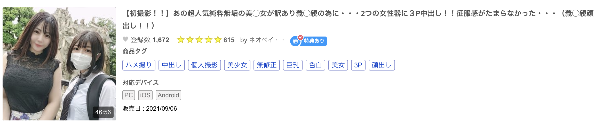 然后之前她拍过无码片吗?答案自然是肯定的,她曾经和两位卖家合作,一位是和えぽす。合作的FC2-PPV-1763716;另外两支作品则是和ネオペイ・・合作的FC2-PPV-2242100和FC2-PPV-2158352:可以看到因为年纪比较大,所以两位卖家一个把她当人妻一个说她是美熟女: