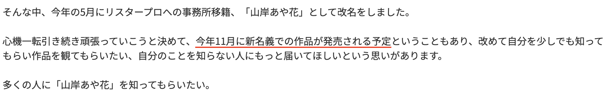什么?你问我为什么知道却又讲了出来?这个让我来和大家解释一下:一般而言事务所是很愿意和业者说各种情报的,但有个前提,就是你不能抢在片商之前公布ー那这次为什么可以说?那是因为山岸あや花(山岸绮花)在募资平台自己讲了,新片将会11月的时候发售,然后ー很文博客-https://www.hinku.com/48356.html