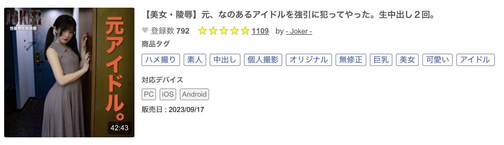 是的,又是FC2无码卖家的杰作,车牌是「fc2-ppv-3798238」,片名是「【美女・陵辱】元、なのあるアイドルを強引に犯ってやった。生中出し2回。」:是的,如果你略懂日文的话,一定会看到アイドル(偶像)这个关键字,怎么样?你下半身的海绵宝宝有没有感受到神秘的力量?有没有长大成为30公分好棒棒?很文博客-https://www.hinku.com/49763.html