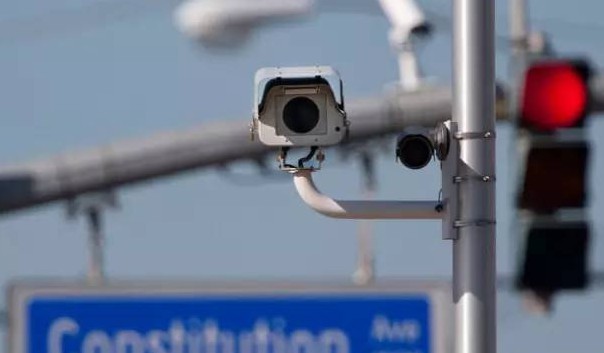 那如果我们在城市里面开的话,也可以看到,就是说红绿灯不远处,有一根杆子竖在那边,上面有这么两三个像是自然监控摄像头一样放在那边的东西。